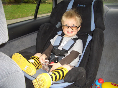 No, it’s not Halloween yet… this is just a taste of Milo’s style. With this new independent streak comes choices. Oh, the choices! Today he picked out his tee shirt, footwear, and eyewear, and insisted on wearing this outfit on our way to pick up Andrew from the airport. What an eclectic young man.